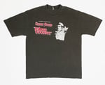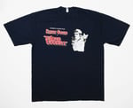 Screen printed by hand on LA apparel heavyweight tees. Water based ink on navy/vintage black tee.